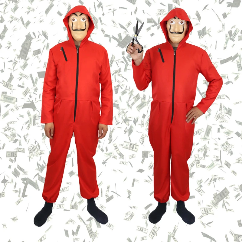 .image of Anime Cosplay for La Casa De in Paper House for Salvador Dali with Mask Mascara Dali Clown Jumpsuit